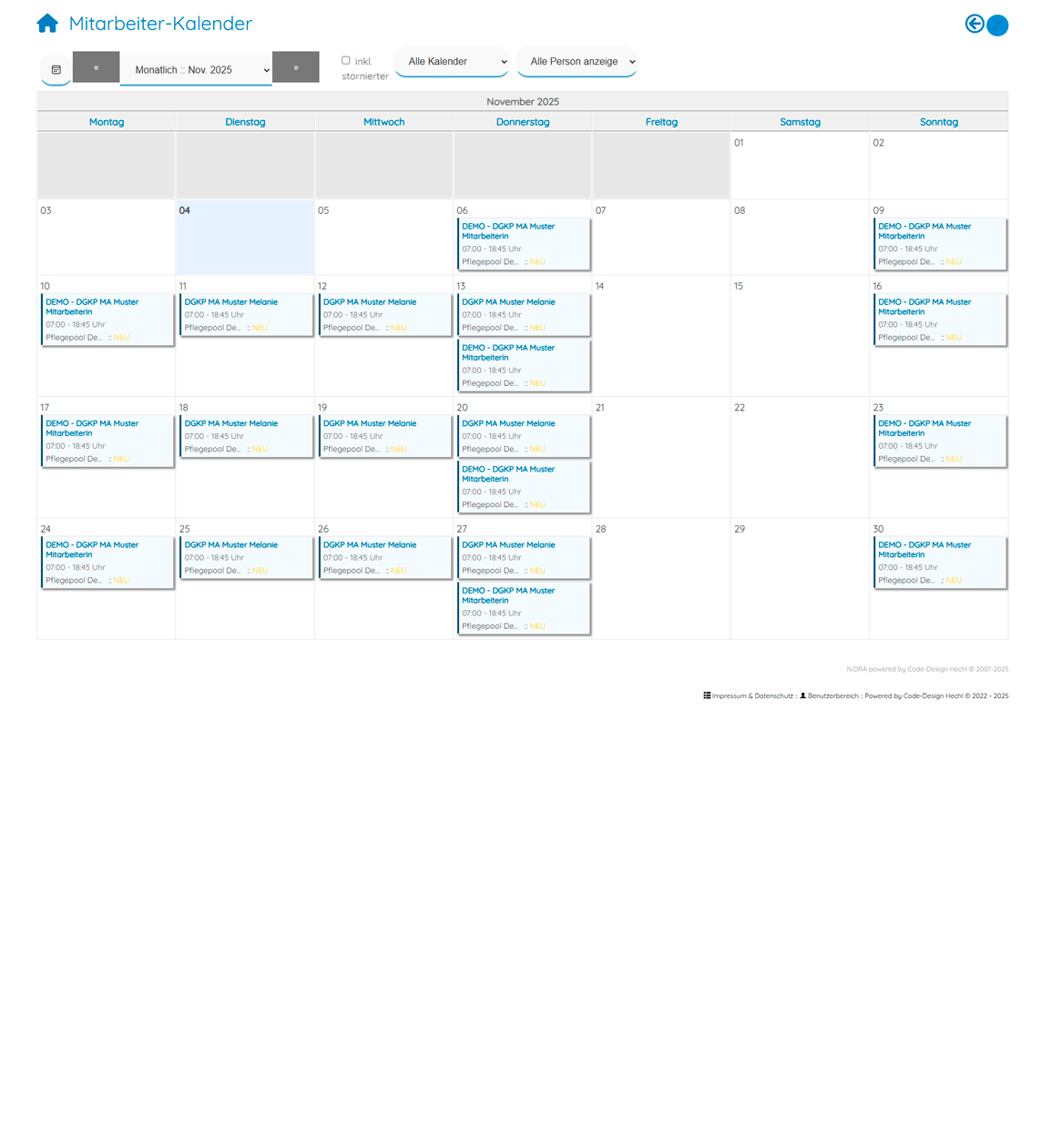 NORA ist ein speziell entwickeltes Tool zur Organisation und Koordination eines Pflegepools / Flexipools.